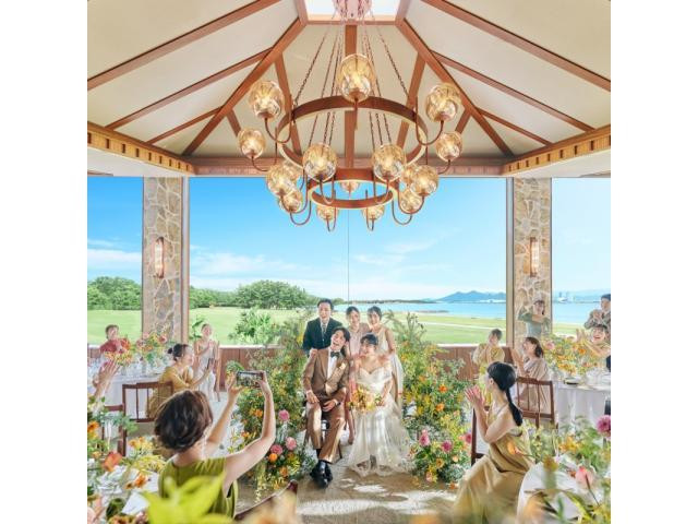結婚式だけでなく前日から翌日まで余韻に浸りゆっくりとハネムーンのような贅沢滞在を満喫。全室オーシャンビューで移りゆく美しい景色を一日中堪能できる。更に挙式料やお料理UPグレードなど190万円ご優待!