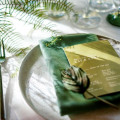 席札結婚式の披露宴会場で各ゲストが座る席がわかるようにと、目印として置いておく名前の書かれた札