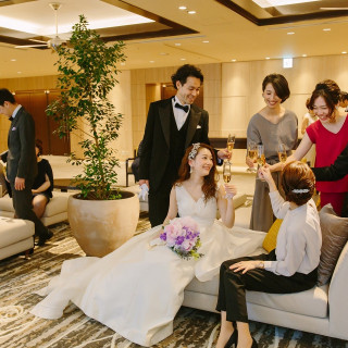 結婚式の必須アイテム『乾杯用スパークリングワイン』をプレゼント! 乾杯用スパークリングワイン お一人様500円相当を大人全員分をプレゼントさせていただきます。