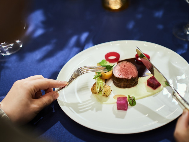 婚礼で一番人気のメニュー『黒毛和牛フィレ肉とフォワグラのロッシーニ風 黒トリュフのペリグーソース』をご試食いただけます。※17時の回はパティシエによるホテル特製スイーツをご提供