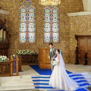 | おすすめ ポイント | 重厚な木の扉を開ければ、そこには美しい輝きを見せるステンドグラス、ロイヤルブルーのバージンロードが広がります。木のぬくもりと本物の荘厳さを感じさせる大聖堂で、花嫁の憧れを叶える挙式を。 |