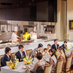 オープンキッチン付きの会場、出来たてのお料理でゲストをおもてなし。美食と会話を楽しむ結婚式を