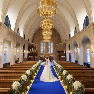 | おすすめ ポイント | 重厚な木の扉を開ければ、そこには美しい輝きを見せるステンドグラス、ロイヤルブルーのバージンロードが広がります。木のぬくもりと本物の荘厳さを感じさせる大聖堂で、花嫁の憧れを叶える挙式を。 |