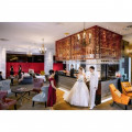 ビンセント喜びや幸福感を象徴とするオレンジをキーカラーとし、ミラーにうつるシャンデリアが煌めき、明るくきらびやかな雰囲気。天然木を使ったアーチにも英国の様式美が光ります。