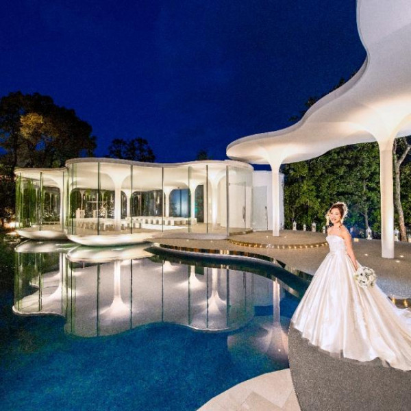 チャペル「エルブランシュ」樹々の緑に包まれ、輝く水面に浮かぶように佇む純白のチャペル「エルブランシュ」牧師、聖歌隊6名、ピアノ演奏、チェロ奏者、式次第、聖書、フラワーシャワーが含まれています。人前式の選択も可能。