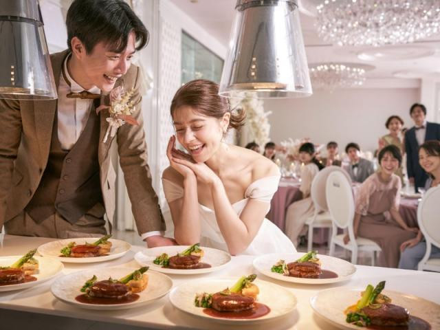 総料理長特製の豪華絶品料理を無料試食☆フレンチ・中華・和食の選べるバリエーション。人気の和洋折衷は見た目から楽しめ自然に笑みが溢れる瞬間。お二人がご納得いくフルコースメニューでゲストにおもてなしを♪