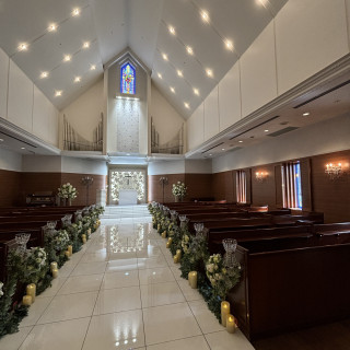 バージンロードの横幅が広く、歩きやすさと圧迫感のなさがよかったです。大理石でドレス写真も綺麗に反射していました。聖歌隊の方が上から歌ってくださるので臨場感がありました。プロジェクションマッピングがあり子供のゲストに喜ばれました。お開き後、上から私達もエンドロールを見ることができ、これも会場決定の決め手となりました。改札を出てから直進距離で本当に徒歩3分あれば余裕で到着できる近さでとても便利でした。駅から看板が大きく出ているのでわかりやすいです。挙式と披露宴の間のウェルカムパーティーは、地下のミューズバーで行われましたが、新郎新婦も一緒にお酒を飲みながらゲストと話すことができ、ゲストの皆様にも驚かれながらも楽しい時間が過ごせました。ある程度自分たちで下調べをしてやりたいことをこちら発信で伝える必要があるなと感じました。要望は快く受け入れてくださいました。詳細を見る (381文字)
