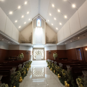 | おすすめ ポイント | バージンロードの幅は約2.4m。幅のあるドレスも、トレーンの長いドレスも綺麗に広がって見えます。 |