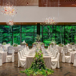 | ガーデン演出 | 有りゲストの目の前で振舞う北海道ならではの海と大地の逸品素材を集め、ダイナミックさと繊細さを楽しめるのはガーデンパーティだけ。自然に囲まれた中で、スイーツやティーパーティもおすすめです。 |