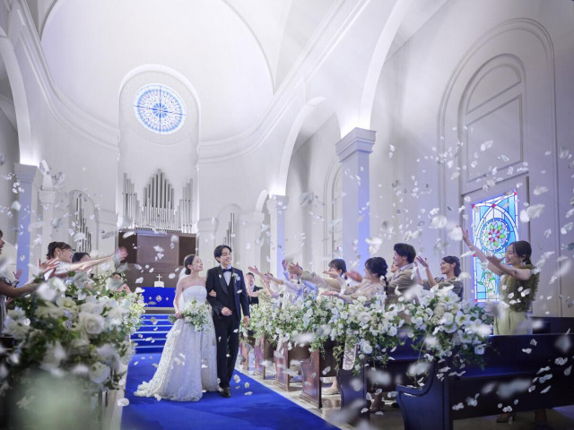 | おすすめ ポイント | 天井高15M バージンロード18M、エリアで最大級の『独立型大聖堂』。ゲストが惹きこまれるようなロイヤルブルーのバージンロードが、とても魅力的!フェアではチャペルをゆっくり見学したり、模擬挙式も開催中 |
