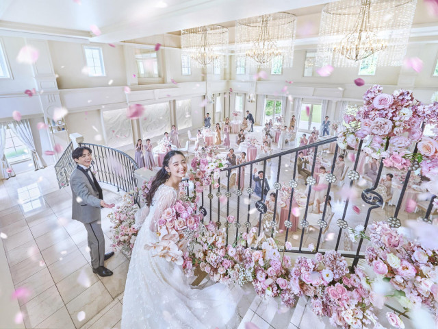 《都内屈指の規模を誇る挙式空間★》憧れの大階段で花嫁体験◎\AMフェア限定/広大なガーデンでのパーティ体験も《幻想的なランタンバルーンも人気♪》演出が素敵だった!とゲストから絶賛される記念日を叶えて★