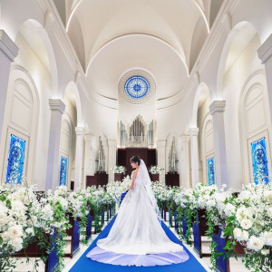 雨でも安心!唯一無二のステンドガラスと青絨毯の素敵チャペル!