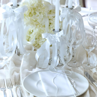 たっぷりの布モチーフをメインに海外ウェディングをイメージさせる「エタニティ」
