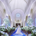 | おすすめ ポイント | 天井高15M バージンロード18M、エリアで最大級の『独立型大聖堂』。ゲストが惹きこまれるようなロイヤルブルーのバージンロードが、とても魅力的!フェアではチャペルをゆっくり見学したり、模擬挙式も開催中 |