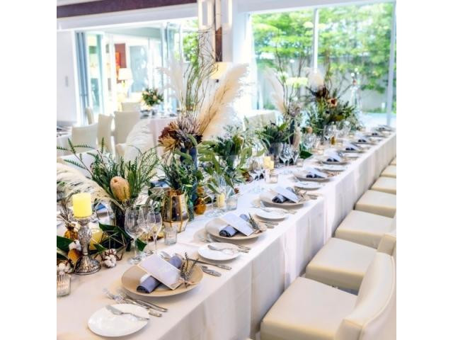 パーティ会場は専属のフローリストと一緒に、お二人の思い通りにコーディネート!ガーデンでは美しい風景を楽しみながら、写真を撮ったりゲストと一緒にお楽しみいただけます。