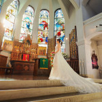 【挙式会場】立派なステンドグラス、コーラス隊の方々、落ち着い