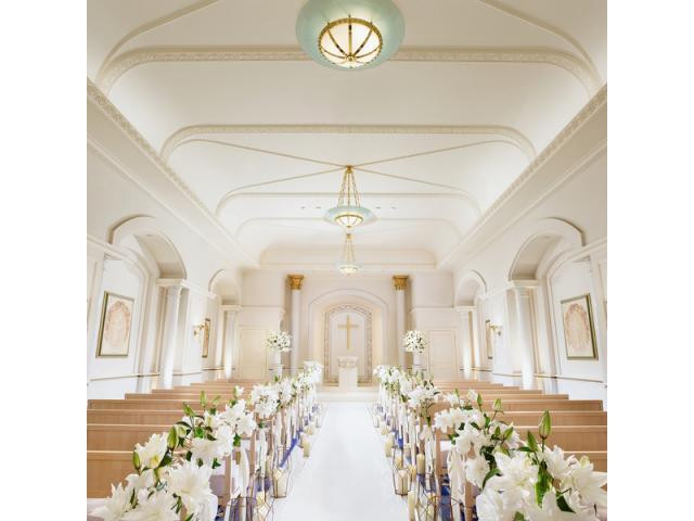 【自然光差し込む上質で温かみのあるチャペル】ステンドグラスや調度品にもこだわった花嫁が美しく映える空間。ひとつひとつのシーンの意味合いを大切にしているマリオットならではの挙式を体感いただけます。