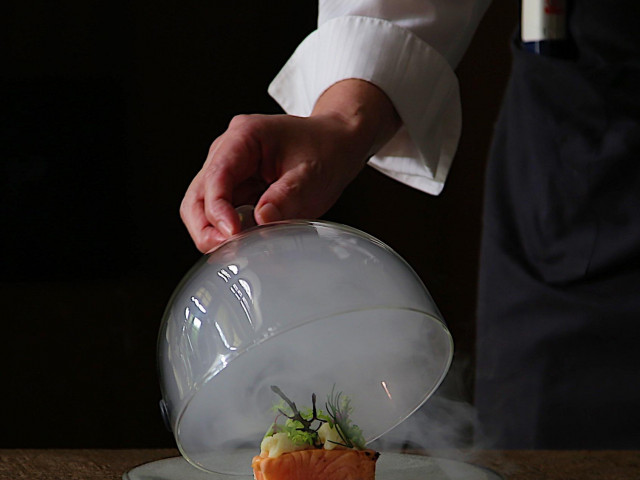シェフが産地・鮮度にこだわった食材を使った料理を目の前で調理してくれる。旬のお野菜を使った温まるスープ、自慢の焼き立てパン、黒毛和牛が贅沢に試食できる。メインはオマール海老を選択することもでき満足度◎