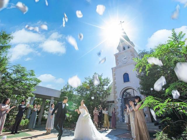 【開放型チャペル&緑溢れるガーデン】屋上に佇むグレースコートチャーチでの入場体験は、当日をイメージできると評判。扉を開けると広がるガラスのバージンロードの感動を体感して☆