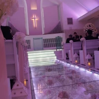 バージンロードがガラス張りで中にお花が散りばめられていてとても可愛いです。