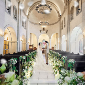 | おすすめ ポイント | 80名着席可能のチャペルは中世に実在したチャペルを再現。長さ14Mのバージンロード、高さ10mのアーチ型天井のスケールは、門出を祝うに相応しい。94名着席可能な神殿は、自然光が入り明るいのが魅力。 |