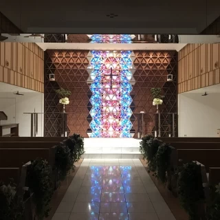シーンによってステンドグラスの色が変わり美しいです。バージンロードは短いですが、ドレスは歩きにくいので私にとっては好都合でした。生演奏はリクエストによって曲目を変えていただけますし、何と言っても聖歌隊の生歌が素晴らしかったです。ゲストも私たちも感動しました。縁起の良い柄(お名前忘れました)の絨毯で、披露宴会場には前室もあるため、そこでウェルカムドリンク等も配れます。披露宴は柔らかい雰囲気です。ドレスが基本プランより高くなってしまいました。ケーキ代、挙式代等結構サービスしていただきました。メニュー表や席次表は持ち込みしました。一流ホテルだけあり、文句なしに美味しいです。コース内の料理をセレクトしてオリジナルコースにしていただけます。京都駅から徒歩10分なので遠方のゲストにも有り難がられます。駐車場も多く、車でも行きやすいです。なるべくコスト削減したかったので色々削りましたが、嫌な顔ひとつされず受け入れてくれました。特典としてサービスいただいた部分も多く、本当に感謝しています。挙式時の聖歌隊の歌声、生演奏、ステンドグラスコスパが良かったことです。一流ホテルにも関わらず、費用を抑えてそれなりに素敵なお式を挙げることができます!詳細を見る (518文字)