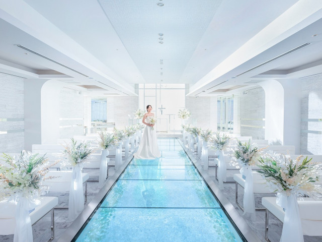 おすすめ ポイント | 7色に光り輝くガラスのバージンロードは必見 |
