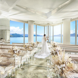 海が見えて開放的な雰囲気で挙式ができそうです。また、自然光と調和する色合いで、ウェディングドレスが輝きそうだと感じました。最初にパーテーションが降りており、式が始まった瞬間に一気に開く様も感動的で、心惹かれました。予算内に挙式後のアフタープラン(ホテル宿泊など)があるため、コストパフォーマンスは他者に比べて良いのではないかと感じています。アクセス良好で、かつ送迎サービスかあるため、遠方からのゲストも出席しやすいです。親身に相談に応じてくださる、丁寧な方で安心できます。宿泊サービス少人数に親族に向けて挙げたい方にはおすすめしたいです。詳細を見る (269文字)