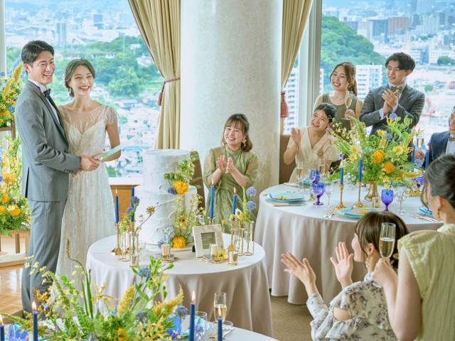 地上約90Mから臨む瀬戸内海はまさに息をのむ絶景。家族婚にぴったりの会場は全て高層階だから、眺めも家族へのおもてなしにできる!と大好評♪