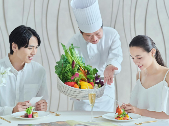 | おすすめポイント | ゲスト全員が楽しめるお料理を提案!日本とフレンチが融合したフレンチジャポネスタイル デザートビュッフェ有りキッズメニュー有りオリジナルメニュー・ケーキ有り