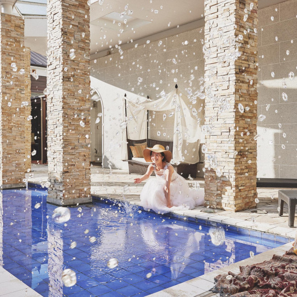 広大なガーデンやプライベート感溢れるプールテラス付きの貸切邸宅で、お二人の理想のウェディングを♪オールシーズン選べるプラン