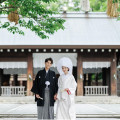 和装も洋装も叶う◎【本格神社式】【館内神殿】【和装人前式】【竹林挙式】など4つのスタイルから挙式が選べる!日本庭園を望む和モダンテイストの会場では、<和食材×フレンチ>で美食のおもてなしが叶う♪