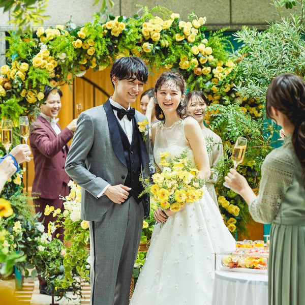このプランに含まれるもの 挙式料 ○ 料理 ○ 飲み物 ○ ケーキ ○ 控え室料 ○ 席料 ○ 介添料 ○ 美容着付 ○ 新婦衣裳 ○ 新郎衣裳 ○ 引出物 ○ 写真 ○ 印刷物 ○ 装花 ○ 音響・照明 ○ サービス料 ○ その他 ・ゲストラウンジでのウエルカムドリンク&ピンチョスフード・乾杯酒・結婚式のテーマが見つかるワークショップ・衣裳小物・プロデュース料も含む 備考※日程などにより特典が異なる可能性がございます