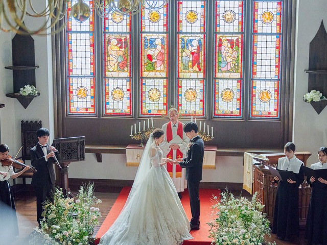 おすすめ ポイント | 200年前に英国に建てられ、大切に受け継がれてきた大聖堂。時間帯によって表情を変えるステンドグラスと絆を深める赤いバージンロード、音楽家による生演奏はいつまでも記憶に残ります。 |