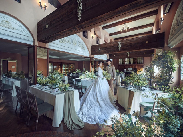 【午前中なら本番直前の会場を見学】アンティーク薫る吹き抜けのリストランテ「Princesa」と自然光溢れるナチュラルな雰囲気の「Du cap」午前中ならデコレーションされた本番直前のパーティ会場を見学OK!