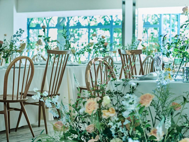 【自由なコーディネート】おふたりのテーマや大切にされたいものに沿ってご提案。フロア貸切だからこそ、空間全体をおふたりらしく自由自在にアレンジOK!午前中ならデコレーションされた本番直前の会場の見学も