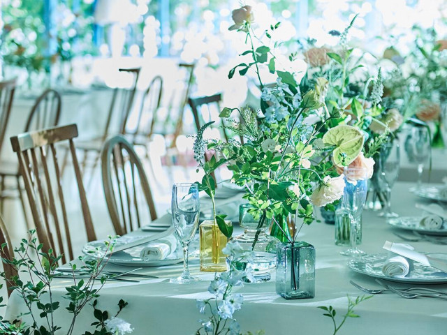 【自由なコーディネート】おふたりのテーマや大切にされたいものに沿ってご提案。フロア貸切だからこそ、空間全体をおふたりらしく自由自在にアレンジOK!午前中ならデコレーションされた本番直前の会場の見学も