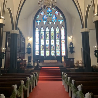 200年の歴史ある大聖堂でステンドグラスとパイプオルガン、ゲストの席も当時からある木の椅子を利用とクラシカルな挙式が出来ます白を基調とした明るくシンプルな会場と、挙式会場と似た雰囲気の臙脂色基調のアンティーク調な会場があります。挙式は厳かに、披露宴は明るい雰囲気でということも出来ます駅から近いです。道も一直線なので分かりやすいです。電車で来ることをおすすめします。車は提携駐車場がありますが、狭く入りづらく停めにくいです。会場がエントランスからロビー、待合室、階段までおしゃれで写真を撮りたくなる感じです。ホテルでの挙式に比べると会場全体が狭く感じるかもしれませんが、素敵なものがぎゅっと詰め込まれていると私は感じました。掃除も行き届いていて細々とした装飾も素敵でした。クラシカルな挙式を挙げたい方におすすめです。また、ホテルの結婚式より会場全体がおしゃれでオリジナリティが出ると私は感じました。確認すべきところは、持ち込みがどこまで出来るかと、したい演出がある方はそれが可能か確認する事をおすすめします。持ち込みでキャンドルなどの大掛かりな演出は不可だそうです。詳細を見る (483文字)