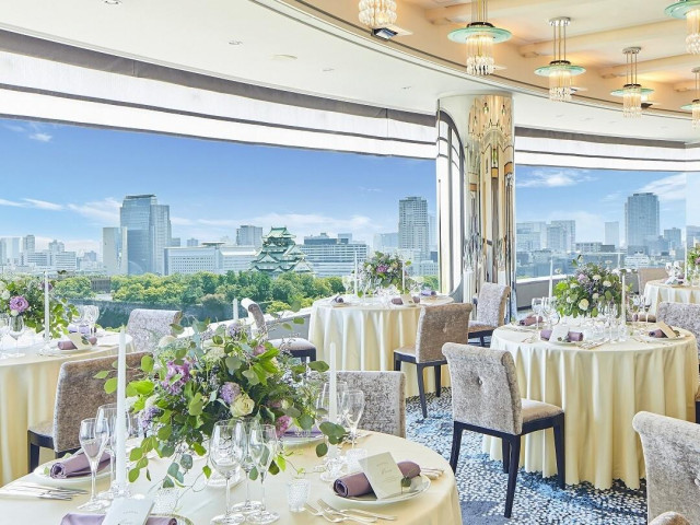 【多彩な9タイプのパーティー会場】大阪城公園の豊かな緑が一望できる絶景会場や、天井高6.8mの広々とした会場など、おふたりのイメージに合わせご提案します。※宴席状況でご覧いただけない場合があります。