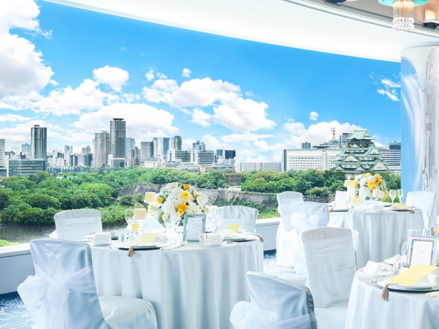 【多彩な9タイプのパーティー会場】大阪城公園の豊かな緑が一望できる絶景会場や、天井高6.8mの広々とした会場など、少人数から大人数までイメージに合わせた会場をご案内。※宴席状況でご覧頂けない場合があります