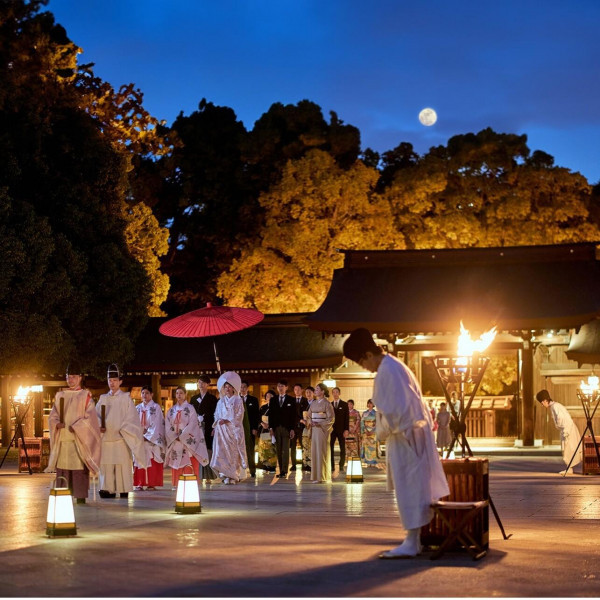 明治神宮での神前挙式(初穂料)緑豊かで広大な明治神宮。ゆっくりと歩みを進める「参進」は花嫁のあこがれ(雅楽、巫女舞、記念品、控室など)