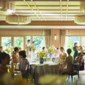 明治神宮での挙式後、明治記念館の庭園でゲストとの歓談・フォトタイム