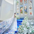 | おすすめ ポイント | 都内でも希少な独立型チャペルです。英国の教会から受け継がれたステンドグラスがふたりを迎え入れ、20mを誇る「ブルーのバージンロード」と天井高12mが人気。フラワーシャワー等は開放的な外で楽しめます。 |