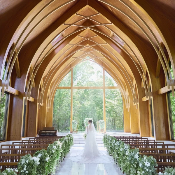 | おすすめ ポイント | 「緑あふれる木とガラスのチャペル」、「感動的な水と光のチャペル」、「独立型の白亜の大聖堂」から選べる! |