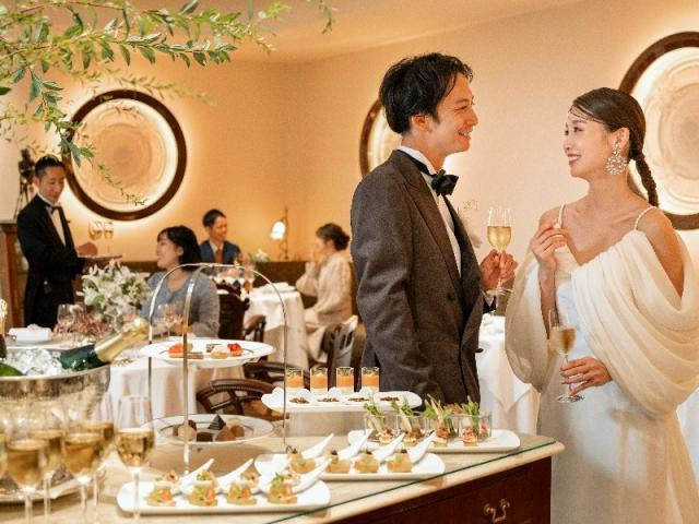 一軒目来館で最大特典進呈! 【来館特典】 ◇豪華5万円相当13品コース試食(無料) ◇ソムリエ厳選ワイン試飲 【成約特典】 ◇お料理、最大2,200円分グレードアップ ◇衣装最大50%OFF