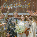 「1.5次会」とは披露宴と二次会の中間のパーティスタイルのこと。海外挙式やリゾート婚を行ったカップルが開くことが多く、披露宴よりもカジュアルな形式や演出が特徴です。また、親族のみの挙式の後に、親しい友人などを招くお披露目パーティなども含まれることがあります。ビッフェスタイル、着席スタイルのどちらも対応できるケースが多く、パーティ進行に合わせて選択するとよいでしょう。