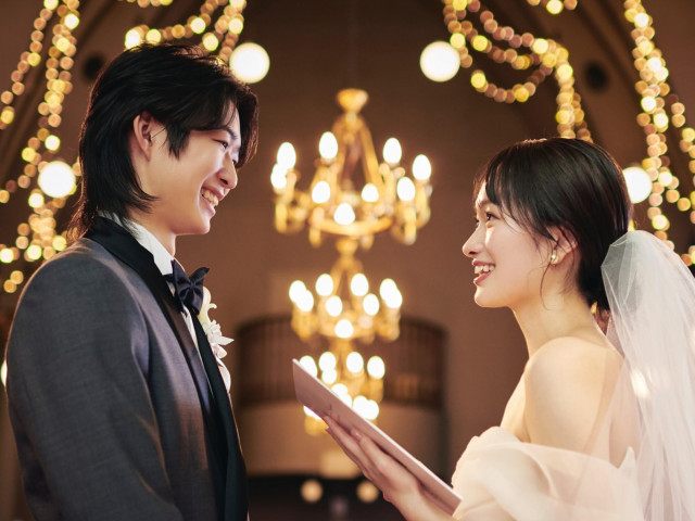高さ13m・長さ18mのバージンロードの壮大なスケール感と、1000本の白いバラとキャンドルが彩る幻想的な空間で、聖歌隊の生演奏をお披露目。挙式当日の雰囲気をぜひ体感下さい。