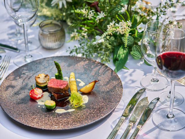 美しいロケーションと落ち着いた雰囲気に包まれ、リラックスしたムードの中、道内産の旬の素材をふんだんに取り入れたシェフ自慢のフランス料理のフルコースをお楽しみいただけます。