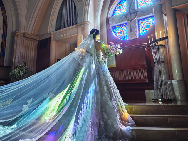 | おすすめ ポイント | 天井高10m。幻想的な光を放つステンドグラスが、長さ20m、幅2.7mの大理石のバージンロードに美しく映り込む |
