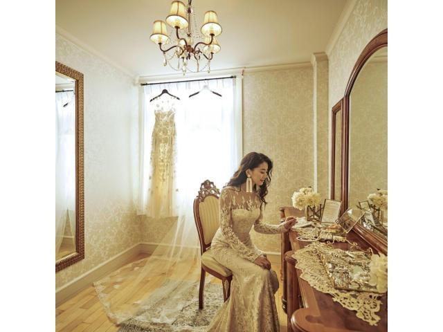 【日本最大級30ブランド12,000着取扱い】ドレスショップ「DestinyLine」と提携。専属のスタイリストが希望を伺い、会場に合わせたトータルコーディネートで、きっと運命の1着に出会えるはず。